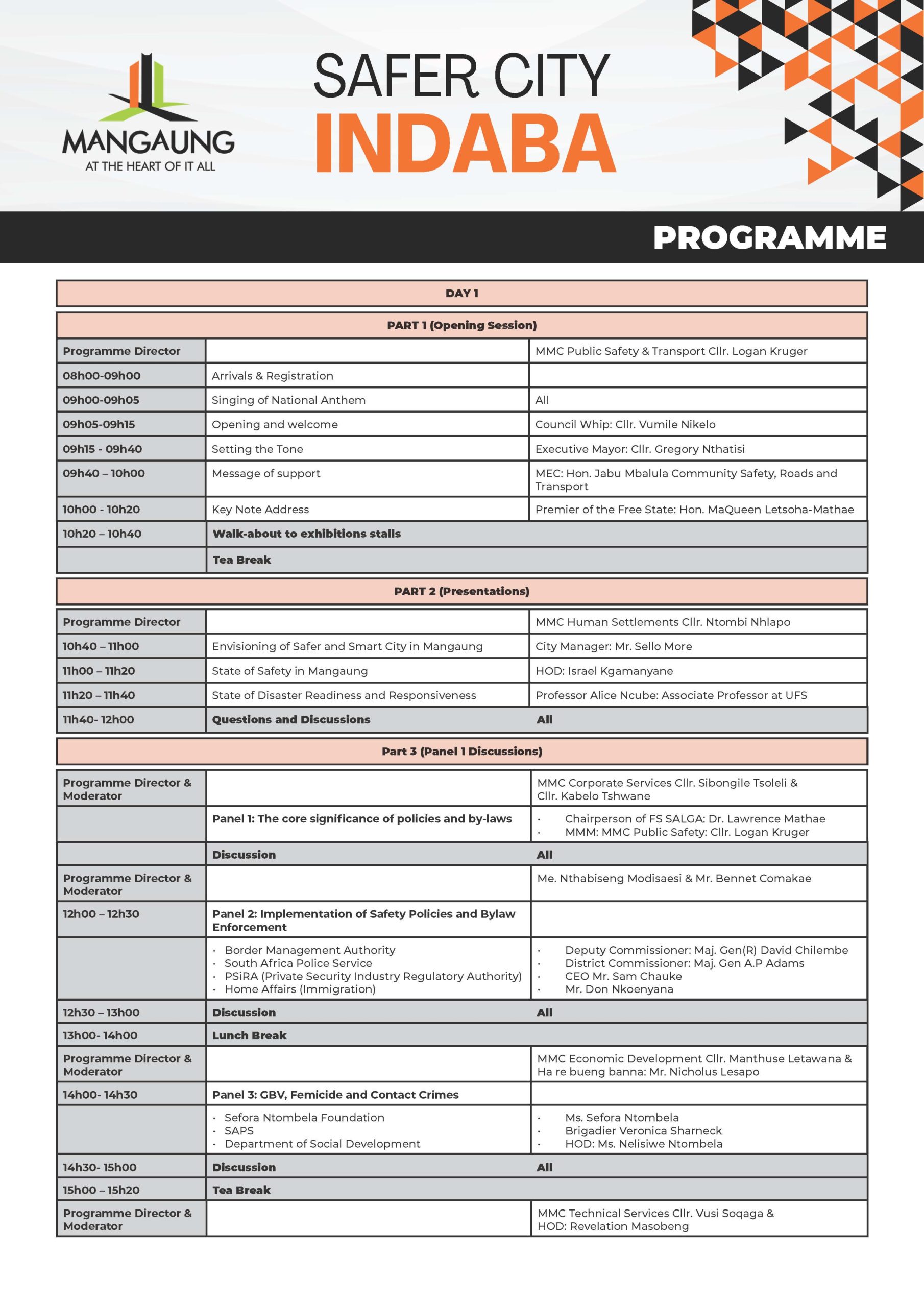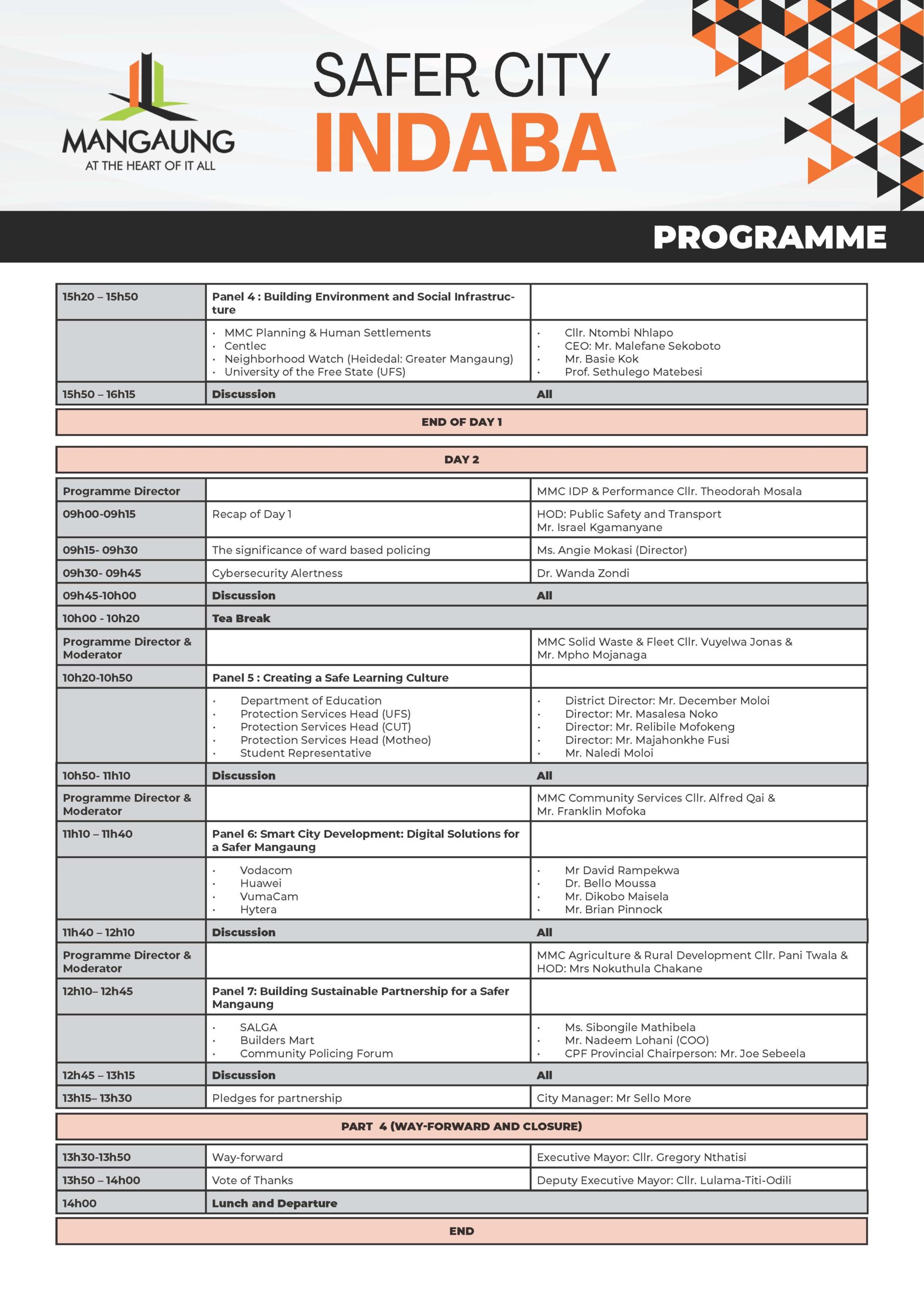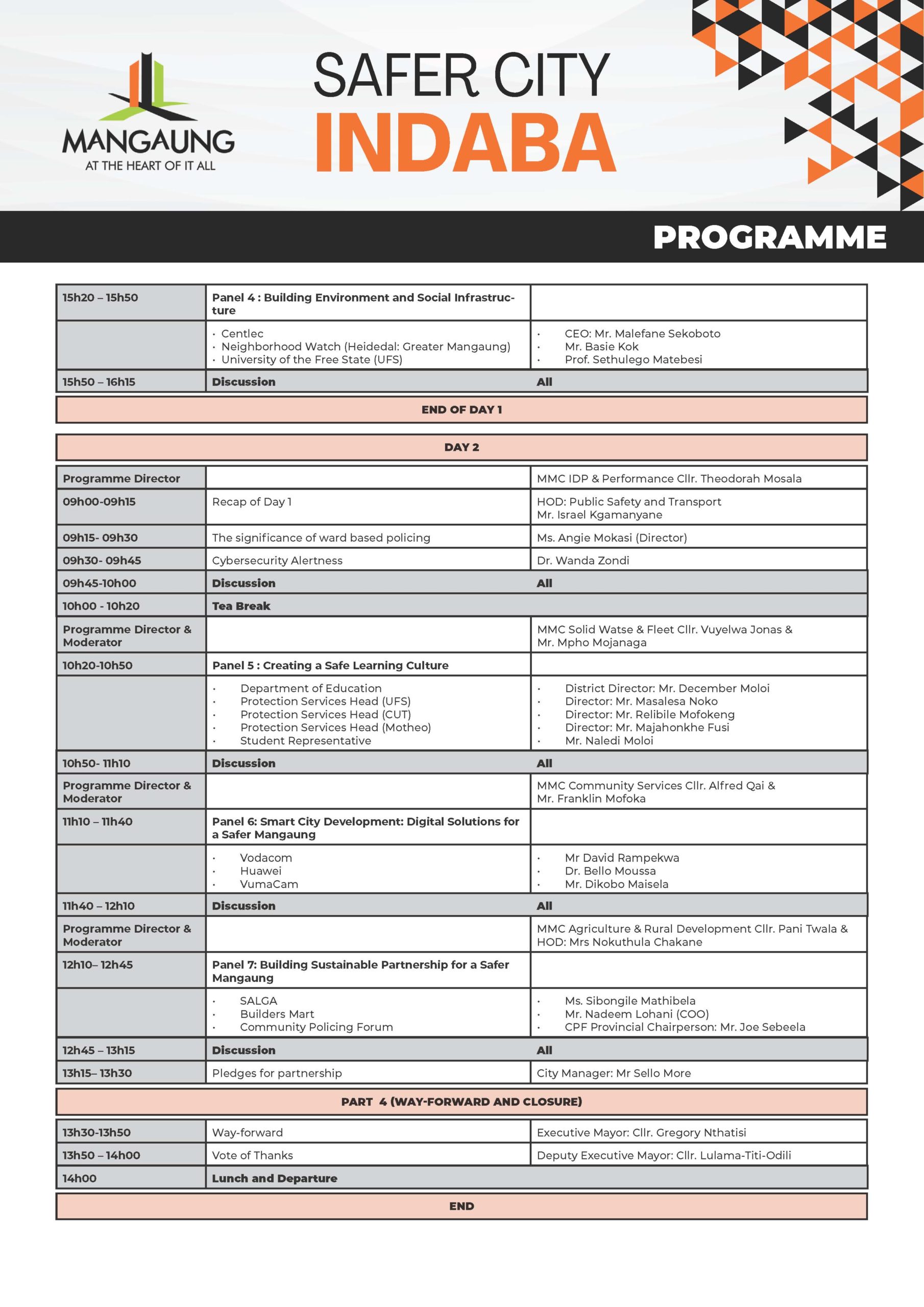 NewsNotices Safer City Indaba: 18 – 19 February 2026 February 16, 2026 webmaster Click here to download the PDF for the Information Poster on the Safer City Indaba Click here to download the PDF for the Programme on the Safer City Indaba